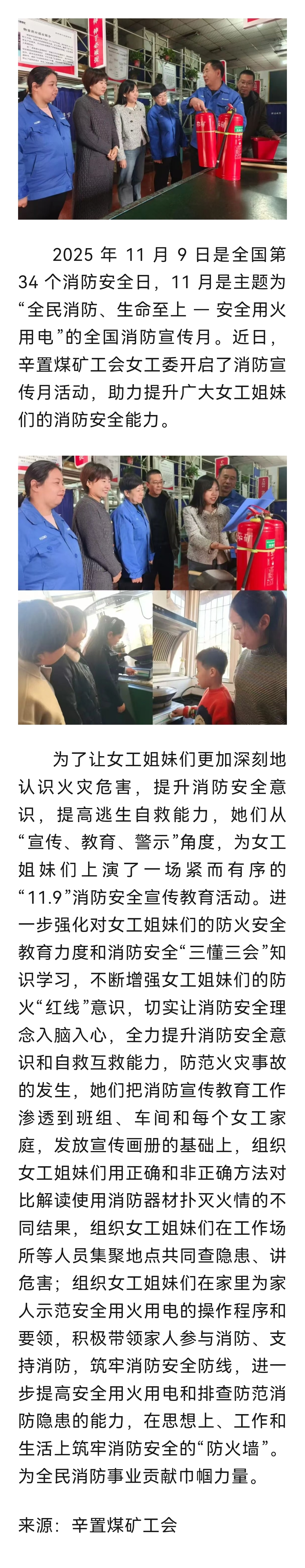 【基层动态】辛置煤矿工会女工委开展“全民消防、生命至上,安全用火用电”主题宣传活动