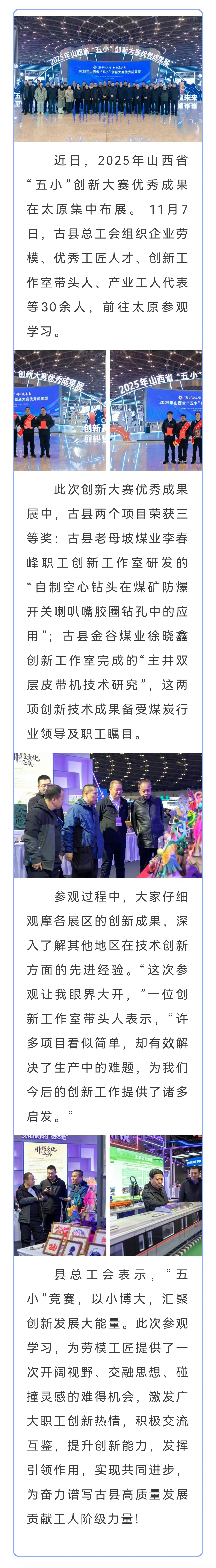 【区县动态】“五小”凝众智 创新赢未来——古县总工会组织参观学习2025年山西省“五小”创新大赛优秀成果展