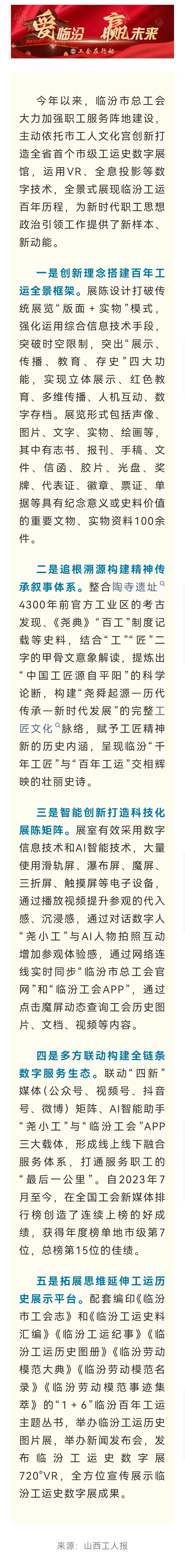 山西省工会重点工作创新案例丨临汾市总工会打造全省首个市级工运史数字展馆赋能新时代工会工作高质量发展